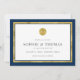 Ce classique moderne enregistrer la carte date dispose d'une fausse bordure de feuille d'or et cercle sur le devant et faux polka de feuille d'or côté arrière. Cette carte a également une couleur arrière - plan modifiable ; pour la changer du bleu à la couleur de votre choix, cliquez sur le bouton personnaliser et modifiez la couleur arrière - plan avant et arrière. Consultez d'autres articles mariages correspondants ici https://www.zazzle.com/collections/editable_color_gold_round_monogram_wedding_3-119510628617321222?rf=238364477188679314&tc=rc . Personnalisez-le en remplaçant le texte de l'espace réservé. Pour plus d'options comme changer la police, sa taille et l'espacement entre les lettres cliquez sur le bouton "Personnaliser". *Veuillez noter que le filigrane Zazzle qui apparaît dans l'aperçu du zoom n'apparaîtra PAS sur le produit imprimé final. © Bois de rose et agrumes