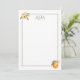 Ces cartes de papeterie monogramme personnalisées présentent des portraits d'aquarelles d'oranges et de fleurs blanches.