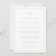 Faire-part de mariage tout-en-un simple, moderne et élégant, avec votre monogramme à deux lettres en haut et vos détails entourés d'une fine bordure. Tous les éléments de conception sont rose rose poussiéreux sur un arrière - plan blanc et peuvent être changés en n'importe quelle couleur que vous souhaitez dans l'outil d'édition de conception. L'arrière dispose de tous vos détails mariages, éliminant le besoin d'une carte d'enceinte séparée, ce qui en fait une suite de faire-part de mariage économique. Un design chic et design qui conviendra à un couple minimaliste.