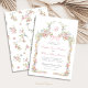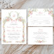 This monogrammed wedding invitation features soft watercolor wildflowers arranged in a graceful Victorian-inspired frame, accented with a delicate blush pink bow and refined botanical details. The romantic front design is paired with a coordinating floral pattern on the back, creating a cohesive and timeless look. Inspired by an English garden, the overall aesthetic feels elegant, airy, and classically romantic.
