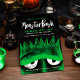 Bassin monstre noir & vert Frankenstein sur le thème Halloween conception d'invitation de fête. Le design présente notre propre illustration dessinée à la main d'une vue rapprochée du visage d'un monstre Frankenstein. "Monster Bash" est affiché dans une écriture manuscrite stylisée en blanc avec les détails de la fête d'Halloween affichés sur l'oeuvre Frankenstein pour créer un design audacieux et unique d'invitation de fête d'Halloween. L'envers présente un motif gris et rustique noir et vert rayé. Toutes les illustrations contenues dans cette audacieuse invitation à thème Frankenstein Halloween en noir et vert sont des oeuvres originales dessinées à la main par Moodthology. Vous pouvez customiser la taille du texte, la couleur du texte, la police et la mise en page de votre propre préférence de conception personnelle.