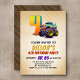 Casse-toi dans un grand anniversaire avec ce design de monstre rockin' camion? Avec des oeuvres d'art vives et audacieuses et des pistes de boue à l'envers. Parfait pour la fête d'anniversaire de ton garçon. Commandez vos invitations imprimées et les fournitures de fête ou téléchargez vos invitations numériques dès maintenant pour une journée qu'ils n'oublieront jamais !