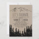 Cette invitation de fête de montagne boisée rustique est parfaite pour une fête de fiançailles en forêt. Le design inspiré de la nature présente la silhouette d'une forêt de pins et de montagnes sur du papier kraft faux. Cette invitation est parfaite pour une fête de fiançailles, une fête de bachelorette, ou tout événement ou fête.