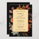 Célébrez votre amour avec une chaleur intemporelle en utilisant cet élégant Faire-part de mariage floral d'automne noir et rouille. Placé contre un arrière - plan noir profond, le design présente un bouquet d'automne magnifiquement illustré dans des tons riches de rouille et de terre naturelle. Encadré d'une élégante bordure dorée, le texte élégant apporte une touche raffinée, parfaite pour les mariages d'automne avec un style sophistiqué et saisonnier.