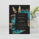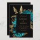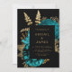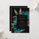 Invitation Moody Dark Floral Turquoise Gold QR Code Mariage
