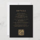 Cette faire-part de mariage élégante et sobre est ornée d'un bouquet luxuriant et romantique à fleurs turquoise avec un faux papier doré et un feuillage de parties scintillant sur un arrière - plan noir. Customisez le texte de couleur or dans des polices stylisées sur un rectangle noir. L'envers offre de l'espace pour les détails mariages sur un arrière - plan noir solide, ainsi qu'un code QR que les clients peuvent scanner pour visiter votre site Web et RSVP, ce qui permet d'économiser le coût d'impression et d'envoi de cartes RSVP séparées.