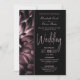 Un élégant faire-part de mariage floral noir et rose, moody, conçu pour convenir aux couples qui prévoient d'échanger leurs voeux dans un endroit et de célébrer avec un dîner, une danse et des toasts avec des amis et des proches dans un autre.