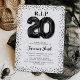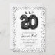 Pleurez vos 20 ans avec style grâce à nos invitations d'anniversaire adultes uniques. Mettant en vedette un fond blanc net avec des ballons en hélium noirs formant les mots 'RIP à mes vingt ans', cette invitation ajoute une touche amusante aux anniversaires marquants. Accentué de bords en paillettes noires et d'un modèle de texte d'anniversaire facile à utiliser, vous pouvez facilement personnaliser cette invitation pour refléter votre propre style et vos plans de célébration.