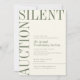 La typographie classique est moderne et fraîche dans un agencement unique et frappant qui invitation les invités à une vente caritative silencieuse avec une sensation de chaleur dans le texte vert lisse et l'arrière - plan blanc chaud.