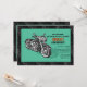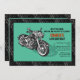 Une invitation masculine pour les enthousiastes du porc qui fêtent leur anniversaire. Le arrière - plan en treillis noir et gris est recouvert d'un panneau turquoise avec une moto.La carte est facile à customiser avec votre libellé, police, couleur de police et choix de six types de papier.