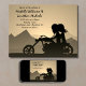 Ce faire-part de mariage est composé d'un couple de silhouettes à moto avec un arrière - plan de montagne.