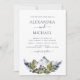 Mountain Rustic Outdoor Berries and Greenery Watercolor Printemps Mariage Dusty Bleu et vert Élégant et moderne Invitations sur arrière - plan blanc - comprend une belle et élégante typographie script avec feuilles botaniques modernes et verdure pour la célébration spéciale de mariage.