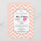 Une invitation mariage à l'anniversaire avec un design tendance - des lèvres de baiser rose glamour et une illustration masculine de moustache d'aspect rétro. Avec les mots M. et Mme L'arrière - plan est un motif de chevrons de pêche. Un cadre décoratif superposé avec les informations de votre fête à l'intérieur. Personnalisez avec les détails de votre fête d'anniversaire.