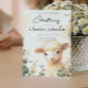 Célébrez l'occasion spéciale du baptême de votre fils avec nos cartes d'invitation délicieuses, avec une illustration attachante d'un mouton entouré de fleurs vertes délicates. Les charmants moutons apportent une touche de fantaisie, tandis que les doux accents floraux verts évoquent un sentiment de sérénité et de beauté de la nature. Le lettrage élégant améliore le design général, ajoutant une touche de sophistication et de grâce. Chaque carte est soigneusement conçue pour faire une première impression mémorable sur vos invités. Idéal pour annoncer ce jalon important, nos invitations à baptiser joliment allient charme ludique et élégance raffinée dans un design harmonieux.