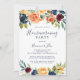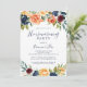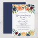 Cette invitation à la fête de la maison fleurie multicolore et élégante est parfaite pour une simple fête de la maison neuve. Le design présente des bouquets soigneusement dessinés à la main de rose, de rougeur, de jaune, de bordeaux, de rouge, de fleurs d'indigo et de feuillage vert, inspirant la beauté naturelle.