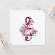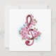Pink treble clef with delicate, detailed pink Japanese cherry blossoms against white background painted over with light blue paint Blooming pink sakura.