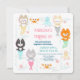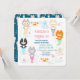 Une invitation à l'anniversaire sur le thème nautique décorée de chatons mignons aux sirènes.