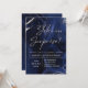 Featuring a luxurious deep navy textured background with delicate silver accents and script typography, this design creates the perfect atmosphere for a sophisticated surprise celebration. The “Shh… It’s a Surprise!” headline adds a fun, secretive touch while maintaining an upscale aesthetic.