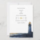 Invitation Navy Blue Golden Sunset Lighthouse Beach Mariage