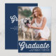 Invités Invitations à votre événement avec cette invitation personnalisable de graduation photo. Il dispose d'un script rétro audacieux et d'une typographie classique. Personnalisez en ajoutant vos détails. Cette invitation de graduation bleu marine est également disponible dans d'autres cartons et couleurs.