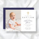 Navy Blue Script Cross Boy Photo Baptême Invitation.