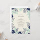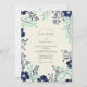 This design features a sophisticated botanical border with deep navy blue cosmos flowers and delicate seafoam green foliage. The ivory backdrop creates a clean, polished look suitable for a formal spring or winter event. Rich watercolor textures bring the leaf sprigs and petals to life, offering a timeless nature-inspired aesthetic.