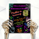 Invitations à la fête d'anniversaire de Neon Halloween. Comprend des polices de néon et des icônes d'halloween comme des crânes, citrouille, casquette sorcier, fantôme, chauves-souris et toiles d'araignée sur un arrière - plan noir. Idéal pour une fille ou un garçon ! Tout libellé peut être modifié. Pour apporter d'autres modifications, accédez à Personnaliser ce modèle. En bas, vous verrez "Vous voulez customiser encore plus ce design ? Cliquez sur EDIT à l'aide de l'outil Design. À partir de là, vous pouvez changer certaines polices et certaines couleurs, déplacer les choses ou supprimer ce dont vous avez besoin.