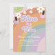 Spa Party Nine est un invitation Vibe Retro Rainbow 9e anniversaire avec marguerites, vernis à ongles et concombres.