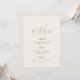 Featuring an elegant editorial-style header on a clean ivory front, paired with a soft vertical stripe pattern on the reverse side, this design blends modern minimalism with traditional wedding sophistication. The airy layout and warm neutral palette create a quiet luxury aesthetic that complements gold flatware, champagne linens, and romantic floral arrangements.