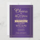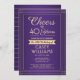 Famille Invitation et amis à une fête d'anniversaire élégante avec des invitations personnalisées violet et or. Tout le libellé de ce modèle (y compris "Cheers to 40 Years") est mis en place pour un 40ème anniversaire, mais est simple à personnaliser pour n'importe quelle année ou type d'événement. Le design se compose d'une bordure rayée moderne sur un arrière - plan à l'ombre violette, d'une calligraphie de script élégante et d'une typographie vintage classique de l'art déco. Veuillez noter que l'or est imprimé en couleur et non en métal. Le design neutre pour les femmes convient aussi bien à un homme qu'à une femme. Bonjour et Joyeux anniversaire !