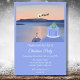 Cette invitation de Noël présente le Père Noël survolant Santorin, Grèce
