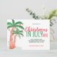 Fêtons Noël en juillet avec un barbecue. Famille Invitation et amis à votre barbecue à thème de Noël avec cette mignonne invitation avec des palmiers dessinés à la main décorés de lumières. Customisez ces invitations avec vos détails et amusez-vous! Dessin original © Michele Davies.