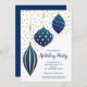 Des ornements d'arbres de Noël bleu foncé et or et des points bleus et or avec vos détails de fête de Noël en lettres chic sont présentés sur ces invitations INSTANT TÉLÉCHARGER ou IMPRIMÉES de vacances. Parfait pour votre fête de vacances de bureau, fête de Noël, invitation de fête de dîner de vacances et plus encore. CORRESPONDANCE d'objets dans notre collection.