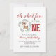 Oh quel plaisir, c'est d'être un ! Christmas Reindeer première invitation de fête d'anniversaire avec rennes d'aquarelle, couronne et pois rouge point retour.