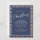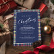 Ce design comprend une invitation à la fête de Noël calligraphie script avec un bleu marine plaid hiver snowflake simple design, un minimaliste minimaliste moderne classique, une typographie tendance stylisée lettering font, une fête de Noël se réunir, une famille amis invitation de fête d'entreprise, avec un dégradé argenté texte lettering style, un design traditionnel créatif, une élégance simpliste élégant contemporain, simple minimaliste fête de Noël