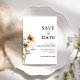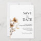 Parfait pour un mariage moderne, ce boho fantaisiste fleur sauvage noir et blanc enregistrer la date a une sensation vintage. fleurs sauvages en terre cuite peuvent être vus dans ce design plante.