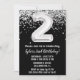 Noir et blanc 2e anniversaire invitation à la fête age 2 anniversaire invitation à la fête avec parties scintillant et écriture de script moderne et ballons de papier amusant.