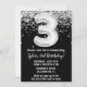 Black and white 3e anniversaire invitation à la fête d'âge 3 anniversaire invitation à la fête d'anniversaire avec parties scintillant et écriture de script moderne et ballons de papier amusant.