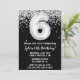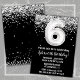 Noir et blanc 6e anniversaire invitation à la fête à l'âge de 6 anniversaire invitation à la fête avec parties scintillant et écriture de script moderne et ballon en papier amusant.
