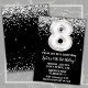 Noir et blanc 8e anniversaire invitation à la fête à l'âge de 8 anniversaire invitation à la fête avec parties scintillant et écriture de script moderne et ballon en papier amusant.