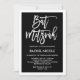 Cette invitation Bat mitzvah simple mais élégante présente un arrière - plan noir à la bordure blanche et une typographie blanche moderne.