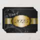 Invitation de graduation en noir et or avec floral noir clair et foncé et un ruban doré qui traverse pour montrer l'année de graduation. Le dos de la carte est noir avec une police d'or clair pour les gens à remplir les annonces de graduation.