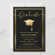 Invitation Noir et or Moderne Casquette diplômé