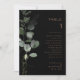 Ce tableau noir formel minimal numéro 1 est parfait pour compléter un mariage rustique. Le design présente un feuillage d'eucalyptus vert aquarelle dans un fond noir. La carte imprime recto verso (recto verso)