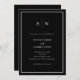 Ces invitations de mariage élégantes et modernes présentent un design de texte minimaliste noir foncé, avec un cadre blanc classique à la bordure. Ajoutez vos initiales ou votre monogramme pour les rendre complètement vôtres.