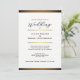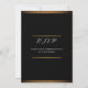 Un minimaliste moderne noir et blanc avec Faire-part de mariage or taillé dans des bordures noires sur un arrière - plan blanc aux accents or. Le texte du côté avant comprend : Faire-part de mariage, avec leurs familles, les noms de la mariée et de la chambre, demander l'honneur de votre présence à leur Mariage, Mariage date et heure, lieu et adresse, avec note de réception. Le texte inverse comprend : RSVP et votre réponse Détails sur un arrière - plan noir avec accent or. Pour personnaliser, insérez simplement votre texte dans notre modèle facile, en remplaçant l'exemple.