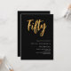 Une invitation moderne et élégante pour une fête du 50e anniversaire pour lui et elle. Arrière - plan noir classique et le mot Cinquante écrit avec de grandes lettres en faux or. Personnalisez et ajoutez un nom et des détails du parti. Texte blanc.