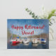 Bonne carte d'invitation à la fête de la retraite, conçue avec des voiliers sur l'eau bleue tranquille dans un cadre pittoresque. Honorer une personne spéciale sur le point de prendre sa retraite avec une fête en leur honneur. Pour personnaliser, il suffit d'insérer le nom de la personne et les détails de votre événement en utilisant notre modèle simple.