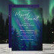 Northern Lights Forrest Magical Moment Wedding. Invite guests to a celebration shrouded in romance and enchantment with this elegant, deep-toned Northern Lights celestial inspired watercolor wedding invitation. This design features a striking watercolor wash of midnight blues and deep forest greens, creating an atmosphere of twilight magic.