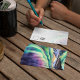 Cette carte postale présente un portrait aquarelle des aurores boréales en Islande.